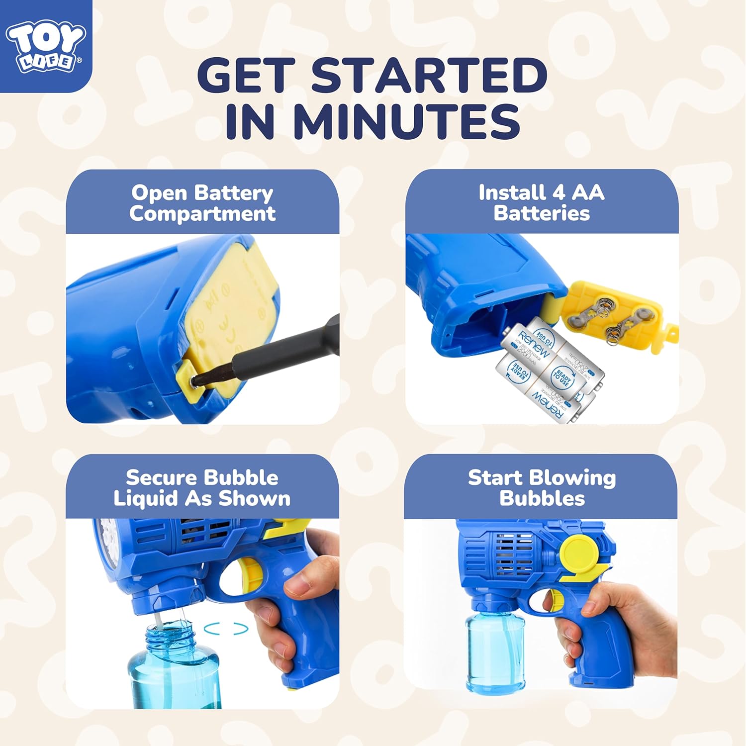 - Quick & Easy Battery Setup: Simply insert 4 AA batteries (not included) and start blowing a steady stream of bubbles instantly.