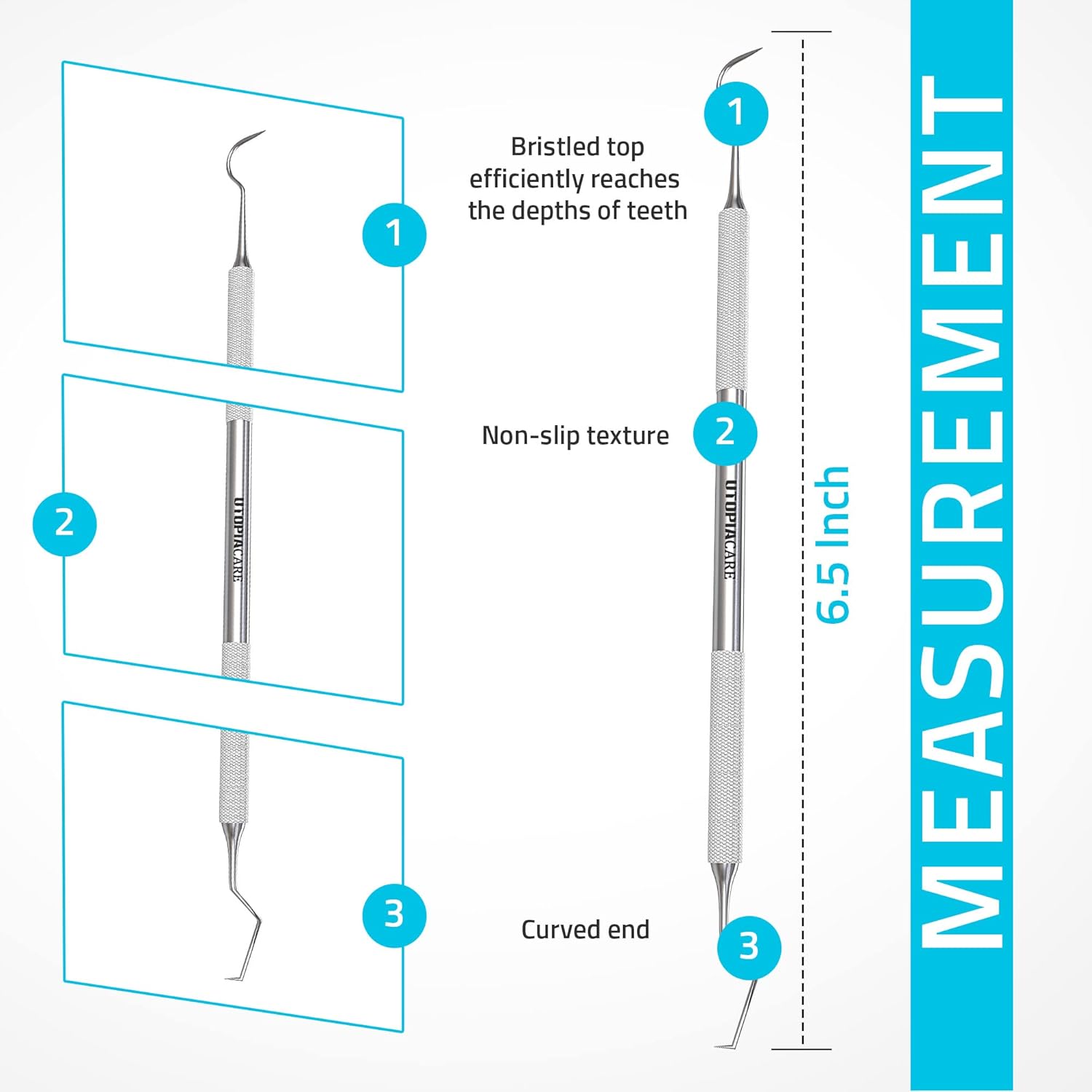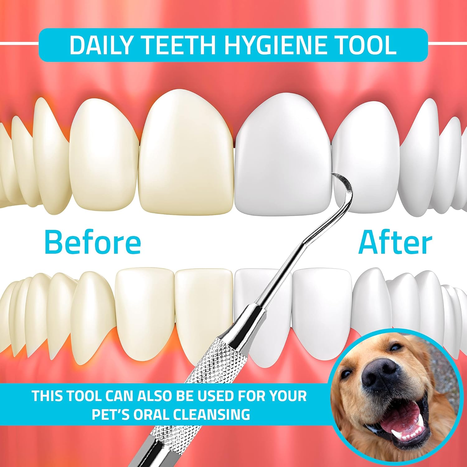 - Easy to Use - Our dental pick with the wide reach easily cleans the hard to see areas of your mouth. Also, plaque remover for teeth can help you clean the spots you miss in your daily brushing and flossing. Convenient to remove tough oral stains, food debris and tartars between your teeth and gums.