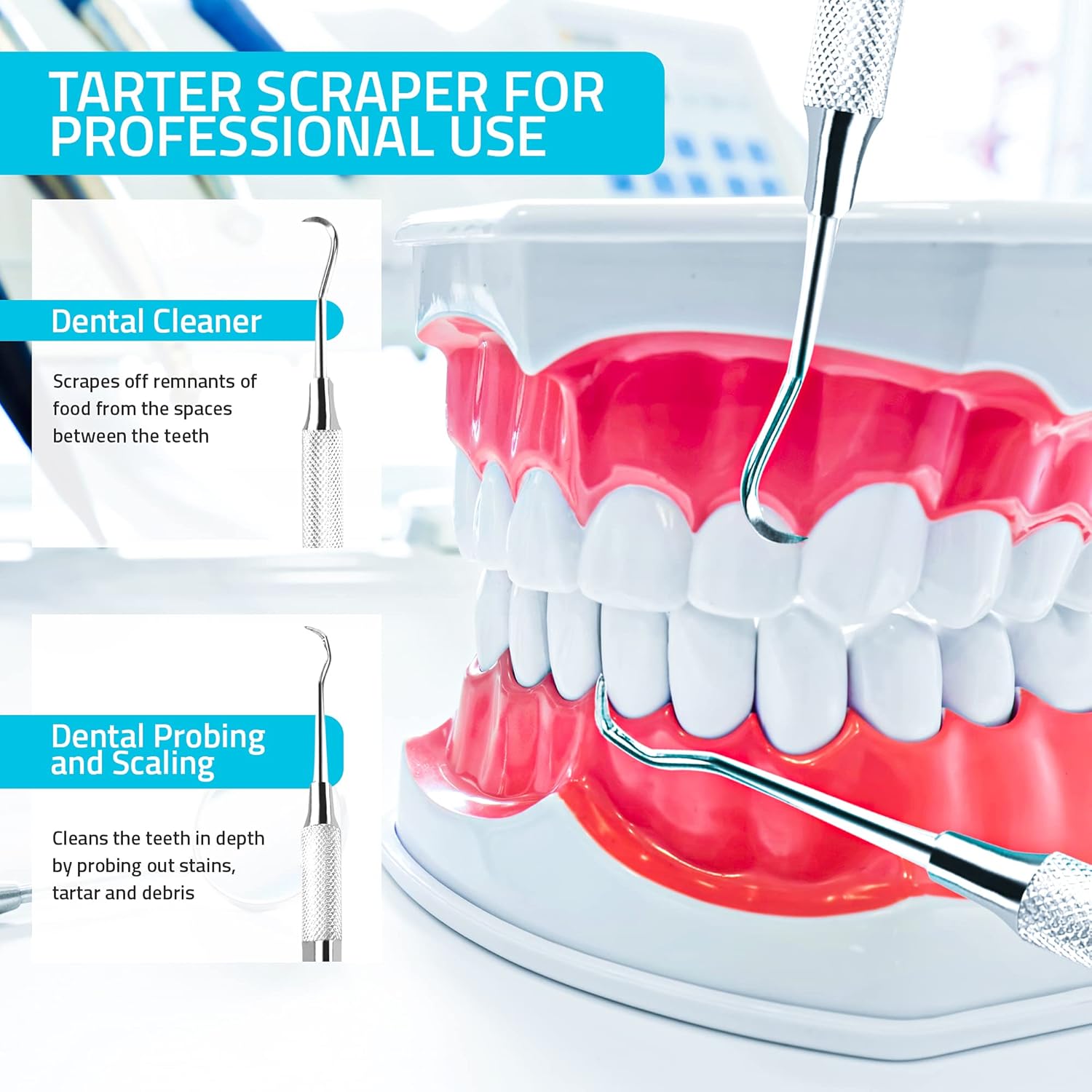 - Premium Stainless Steel - Our professional dental tools are made from stainless steel with a polished finish that resists wear and tarnish thereby making it durable and rust-proof. Easy to clean and sterilize.