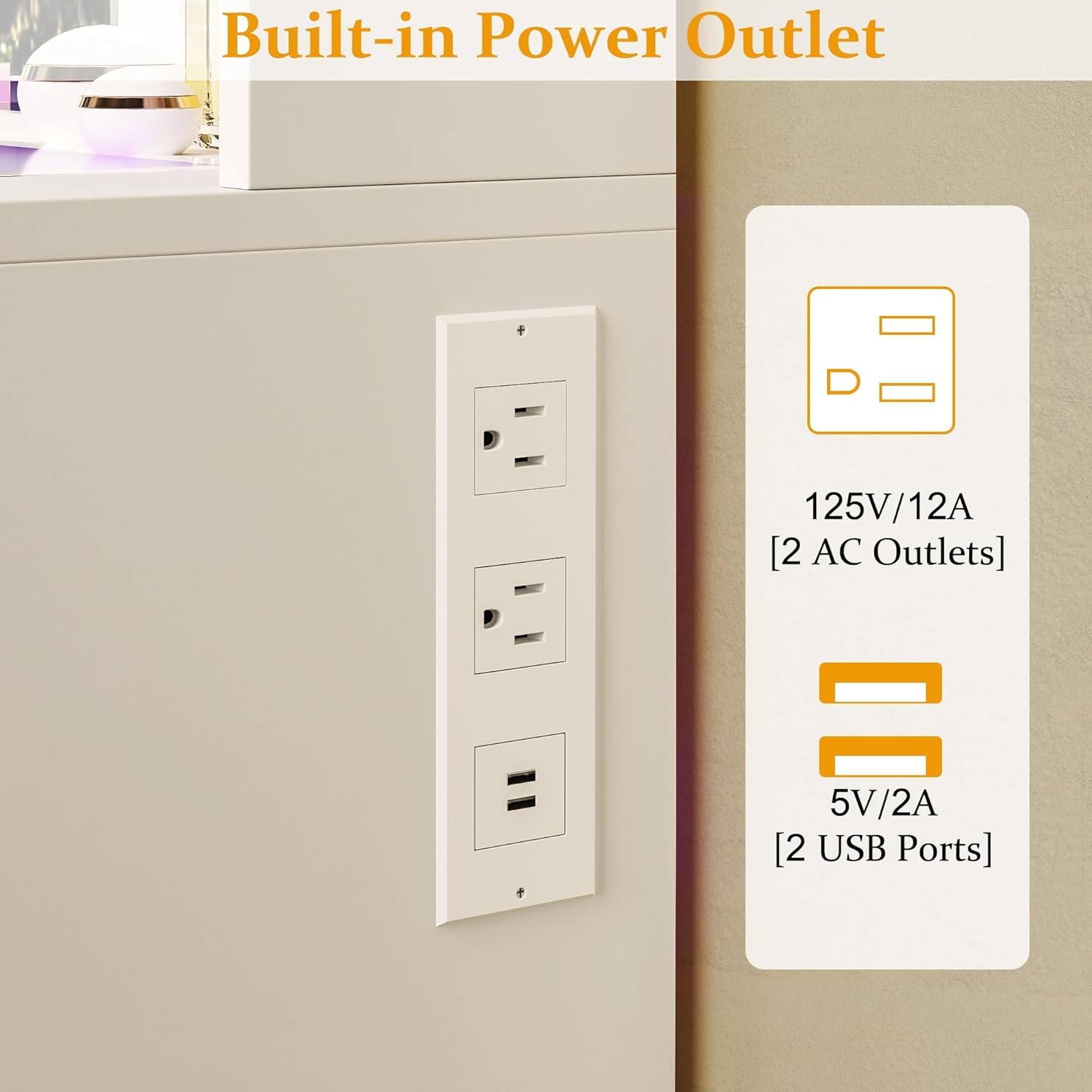 - Power Outlet & Easy Assembly: The white vanity desk with a power outlet, which provide power for your hair dryer, curling iron, and other electronic devices at the same time. Bringing more convenience to your daily life. The white makeup vanity comes with tools and numbered accessories, very easy to assemble following the step-by-step instructions