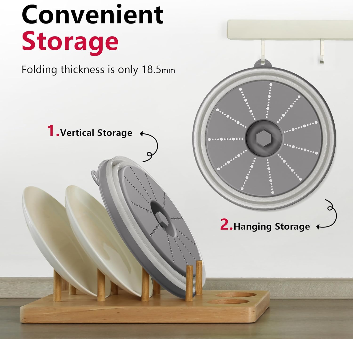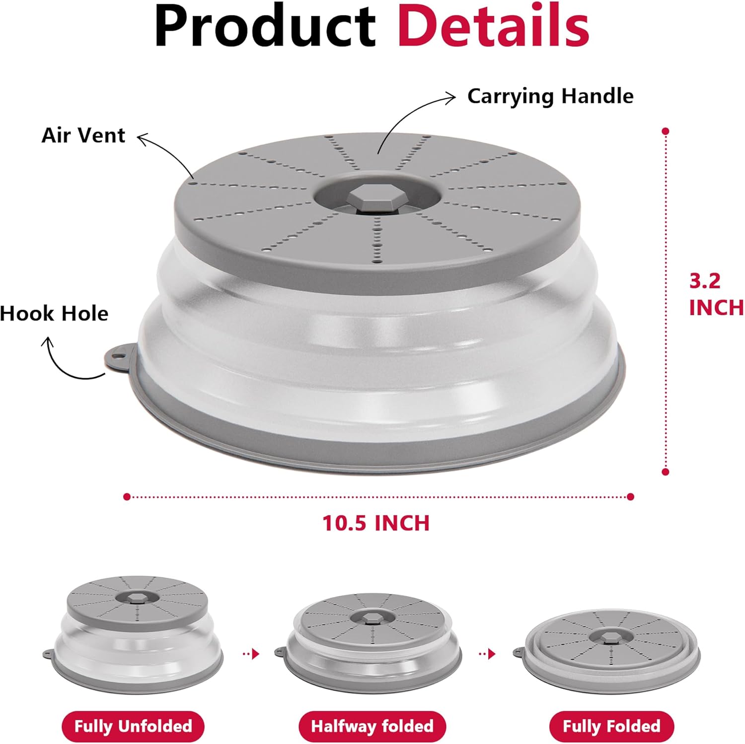 - Easy to Store: The foldable microwave splatter cover pops up to 3.2 inches to cover tall plates, food stacks, and shallow bowls. It also folds down to 0.72 inches when not in use. And features a hook hole for easy storage, saving you more space.