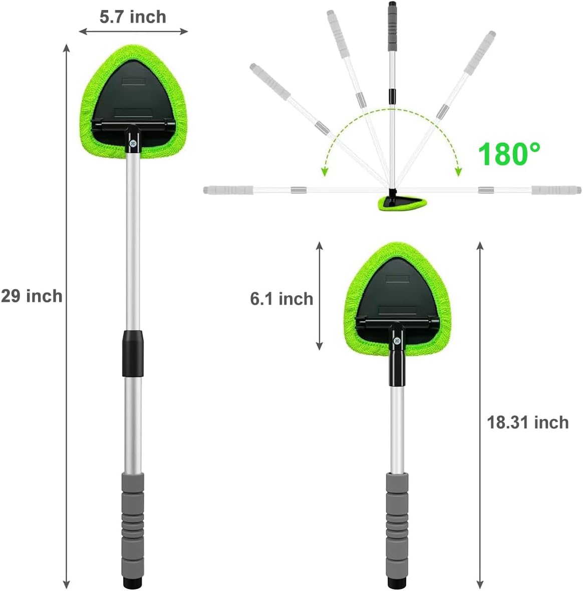 - Full Coverage for Perfect Visibility – Features an Upgraded Large 5.7" W X 6.1"L 180° swivel head for maximum contact with glass surfaces. The extendable 18.31"-29" handle effortlessly reaches tight spots, making it an essential part of any car detail cleaning kit for cars, trucks, SUVs, RVs, and home windows. 🔄