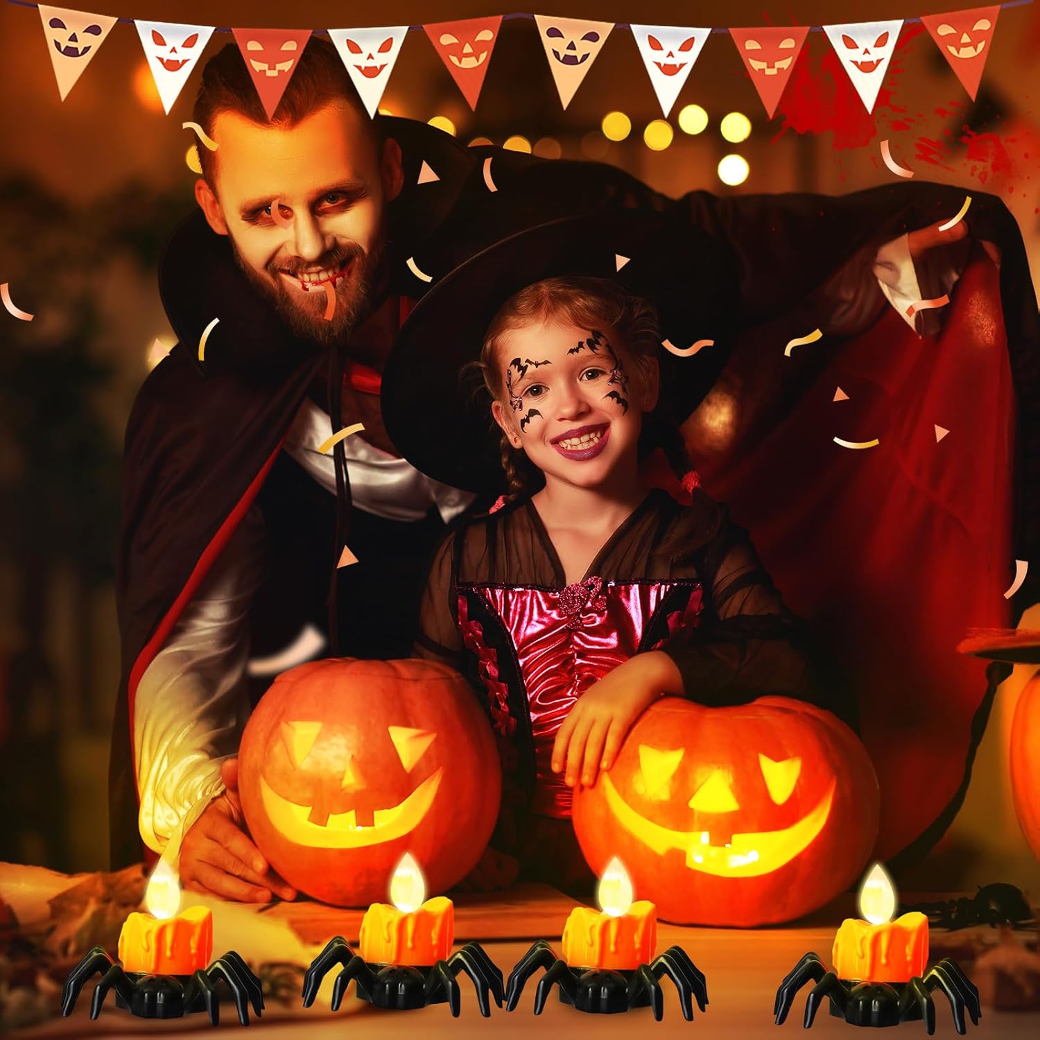 - Safe Flameless Tealight: Powered by batteries (included), our spider lights can be used everywhere. Absolutely no mess, no dripping wax, no smoke, no matches, no fire hazards or burning risks, families and children can safely enjoy the light and fun