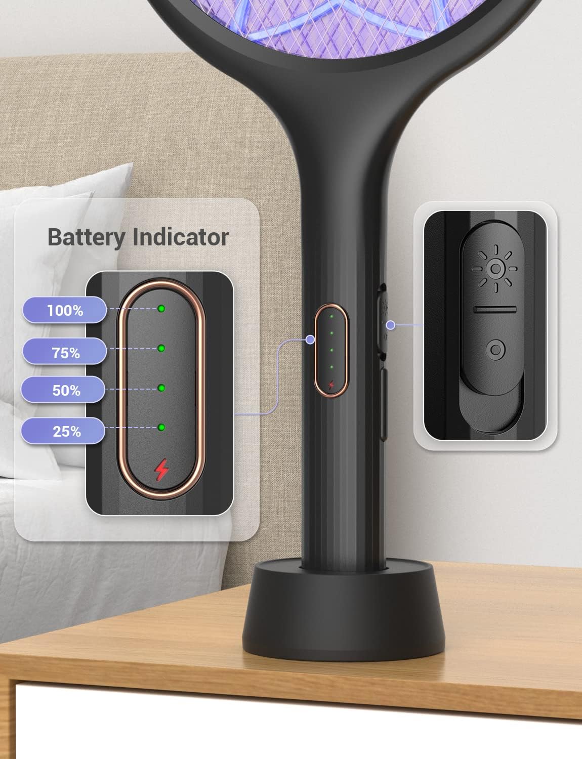 YISSVIC Electric Fly Swatter Bug Zapper Racket Dual Modes Mosquito Killer with Purple Mosquito Light Rechargeable for Indoor Home Office Backyard Patio Camping (Black) (Black-1 Pack)